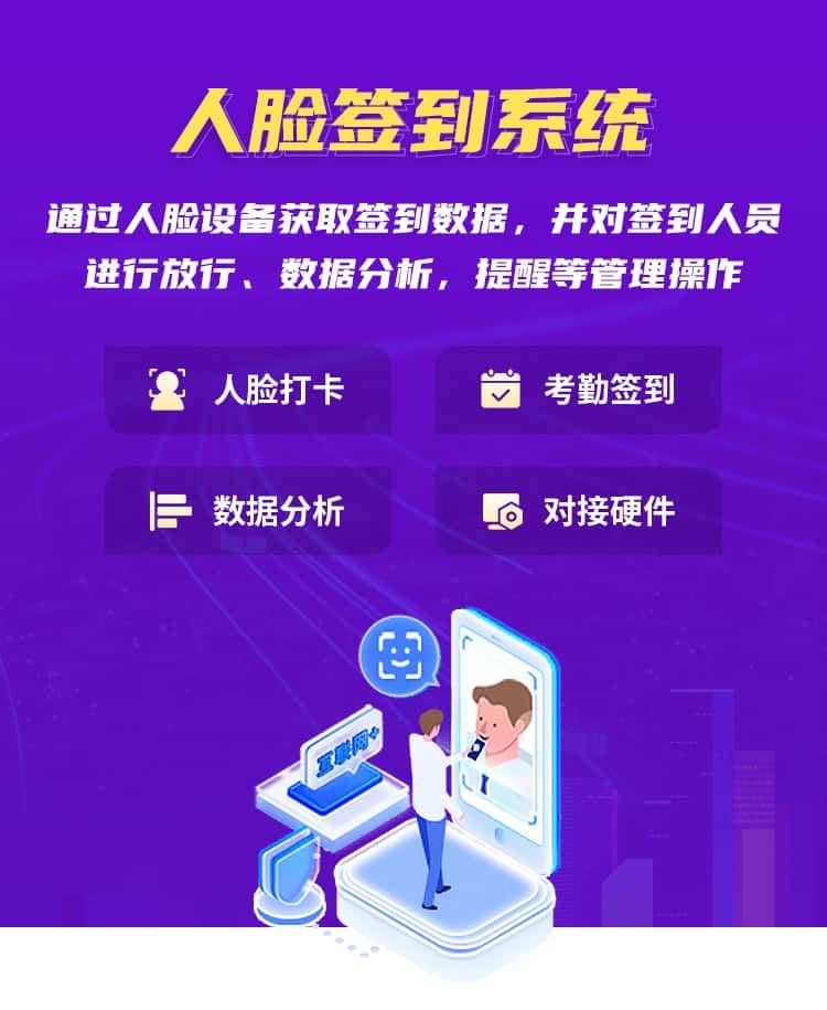 人脸识别技术:人脸签到系统通过使用高精度的人脸识别算法,识别并验证用户的身份。它可以从摄像头获取用户的面部图像,并与系统中事先录入的人脸数据进行比对,以确定用户身份的准确性和唯一性。